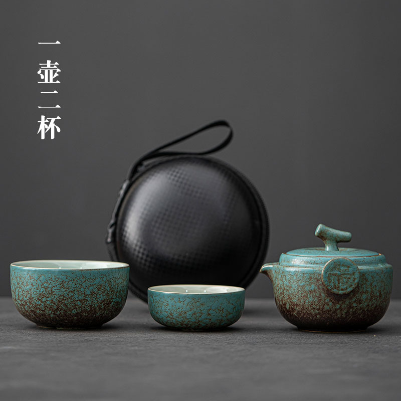 1ポット2杯旅行茶器グリーン陶磁器快客杯工夫泡杯屋外旅行ティーポット小セット