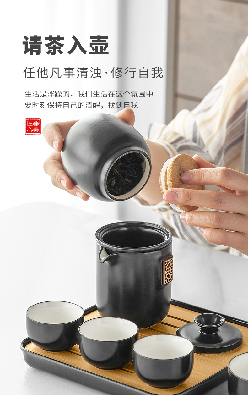 旅行茶器セット快客杯一本四杯ティーポット茶杯携帯シンプルな工夫茶器屋外茶器