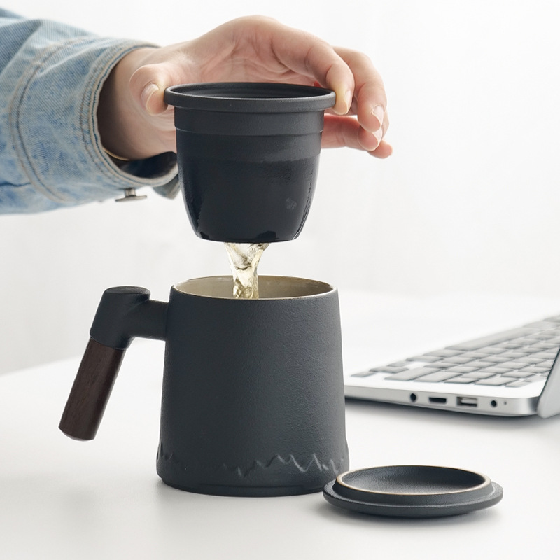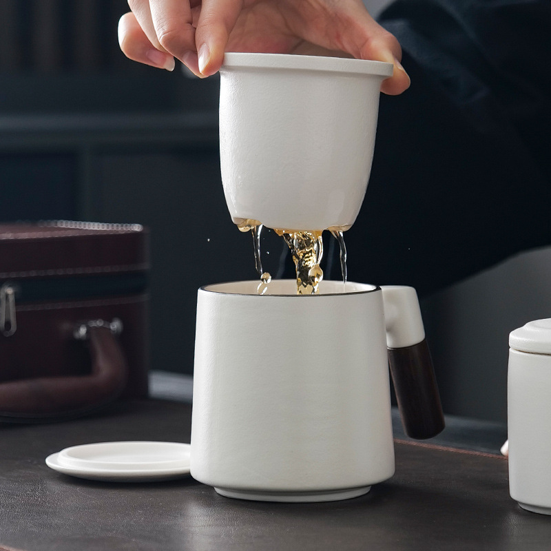 お茶分離カップ陶磁器蓋付きカップオフィスお茶個人専用マグカップお土産誕生日プレゼント
