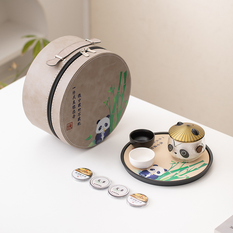 陶磁器のシンプルでかわいい風の軽い豪華な茶器セットの屋外旅行の携帯バッグのポット4杯のパンダのティーポット