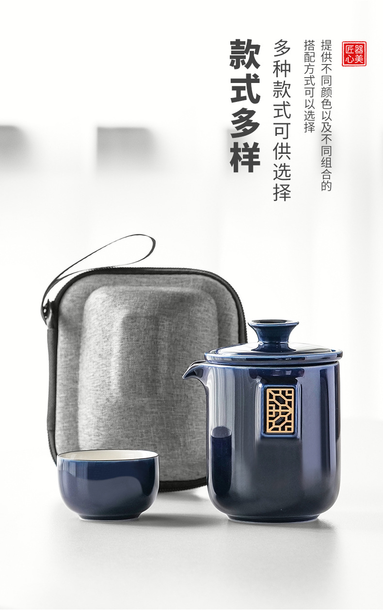 一人用の高級汝窯トラベルティーセット、アウトドアティーポット、ティーカップ、ポータブルカンフーティーセット、クイックカップ