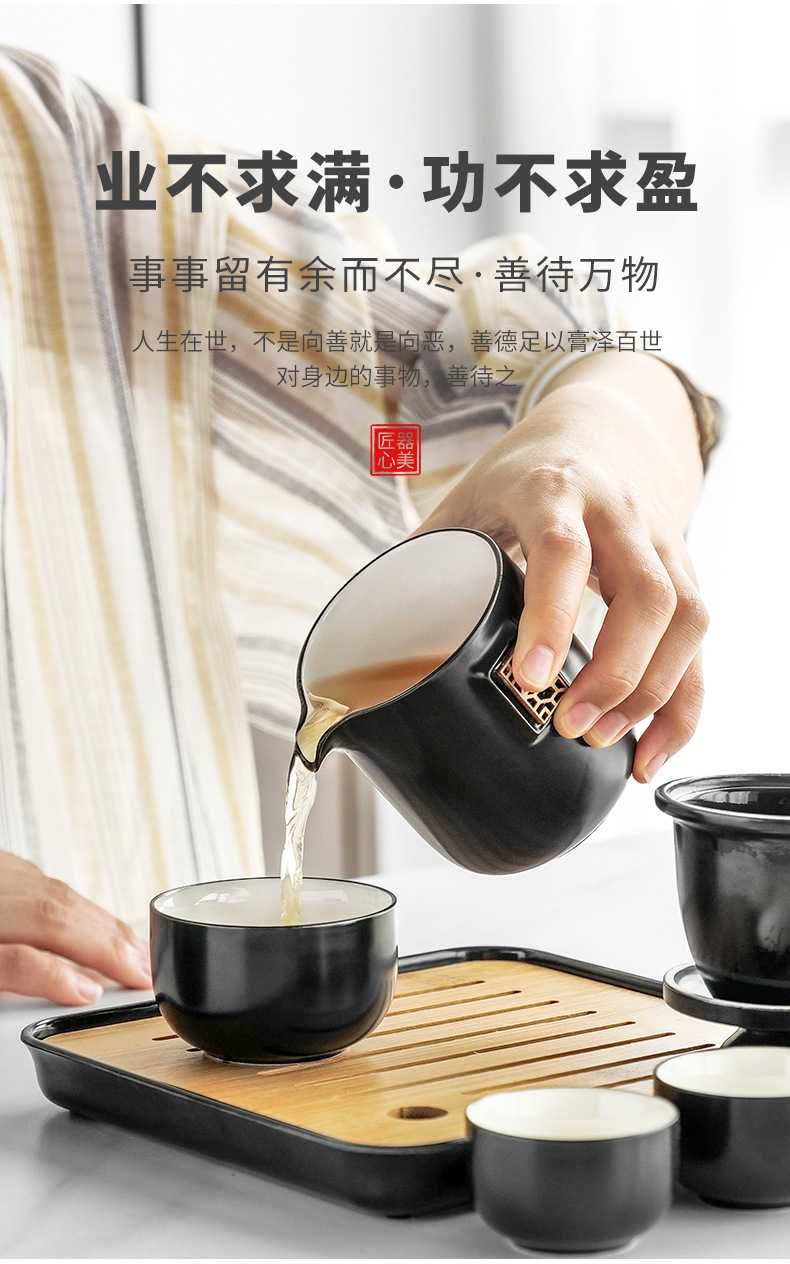 メーカー旅行茶器快客杯一本三杯携帯型蓋碗小セット屋外工夫セットお茶を入れるプレゼント