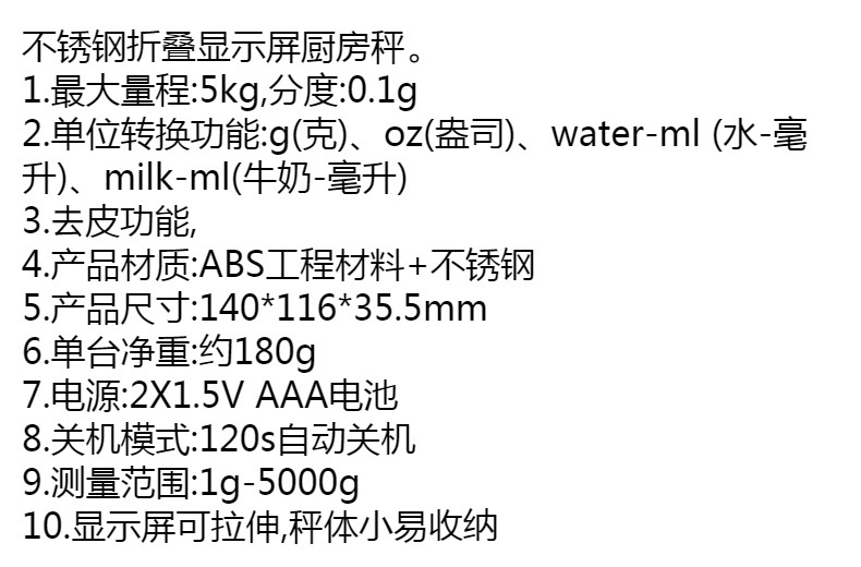 最大計量 5kg、目量:0.1g