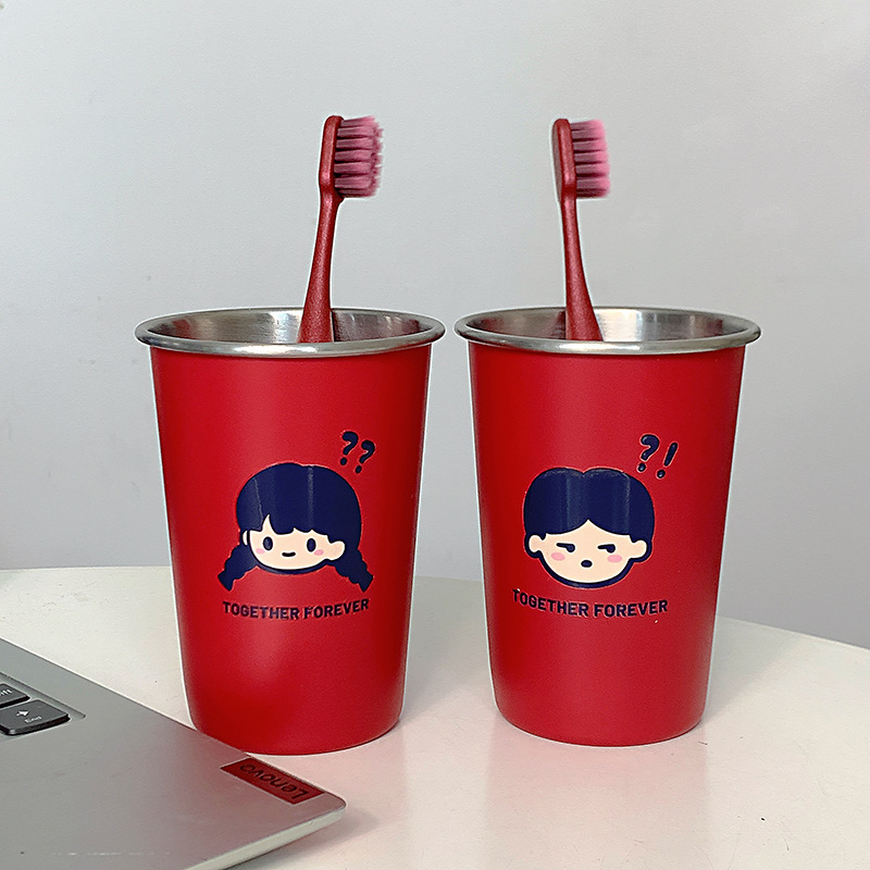 疑問符の男の子の女の子のタイプは厚いです。ステンレスのカップルの歯ブラシのコップは簡単です。