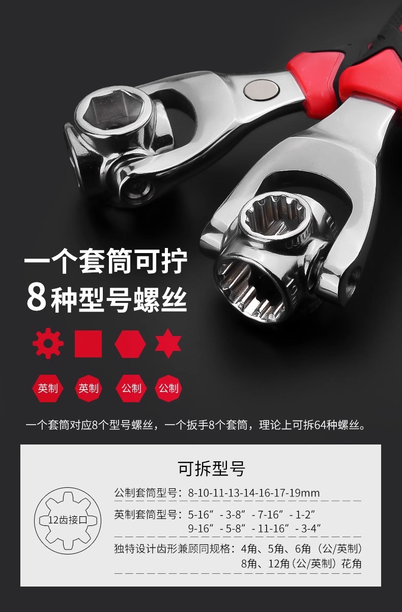 規格型番 【非磁気ゴム柄タイプ】六角タイプ (12-19mm)8 in 1,【非磁気ゴム柄タイプ】六角タイプ (8-21mm)8 in 1,【非磁気ゴム柄タイプ】六角タイプ (8-22mm)8 in 1,【非磁気ゴム柄金】梅の花型(8-19mm)52合一,【マグネットグリップ付き】六角レンチセット(12-19mm)8in1,【マグネットグリップ付き】六角レンチセット(8-21mm)8in1,【マグネットグリップ付き】六角レンチセット(8-22mm)8in1,【マグネットグリップ付き】トルクス型(8-19mm)52in1,【無磁黒金剛】六角タイプ (12-19mm)8合1,【無磁黒金剛】六角タイプ (8-21mm)8合1,【無磁黒金剛】六角タイプ (8-22mm)8合1,【非磁気黒金剛】梅の花型(8-19mm)52合一,【非磁性鏡面モデル】六角形(12-19mm)8 in 1,【非磁性鏡面モデル】六角形(8-21mm)8 in 1,【非磁気鏡面モデル】梅の花型(8-19mm)52合一,【磁気ミラーモデル】ヘキサゴン(12-19mm) 8in1,【磁気ミラーモデル】ヘキサゴン(8-21mm) 8in1,【磁気ミラー付き】梅の花型(8-19mm)52in1