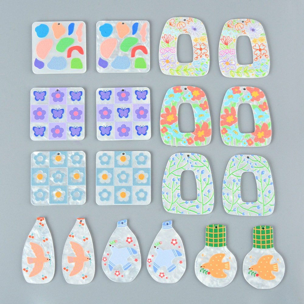 Diyアクセサリーアクセサリー幾何学酢酸板材アクリルプリントペンダント耳飾りペンダントキーホルダーアクセサリー