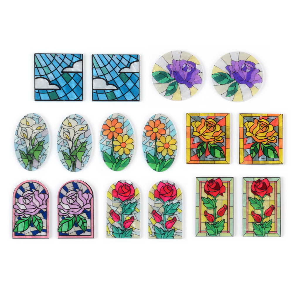 ロマンチックな花のシリーズの円形の四角形のアクリルの板材のdiyの装飾品の部品のペンダントのイヤリングは国境を越えて熱売します。