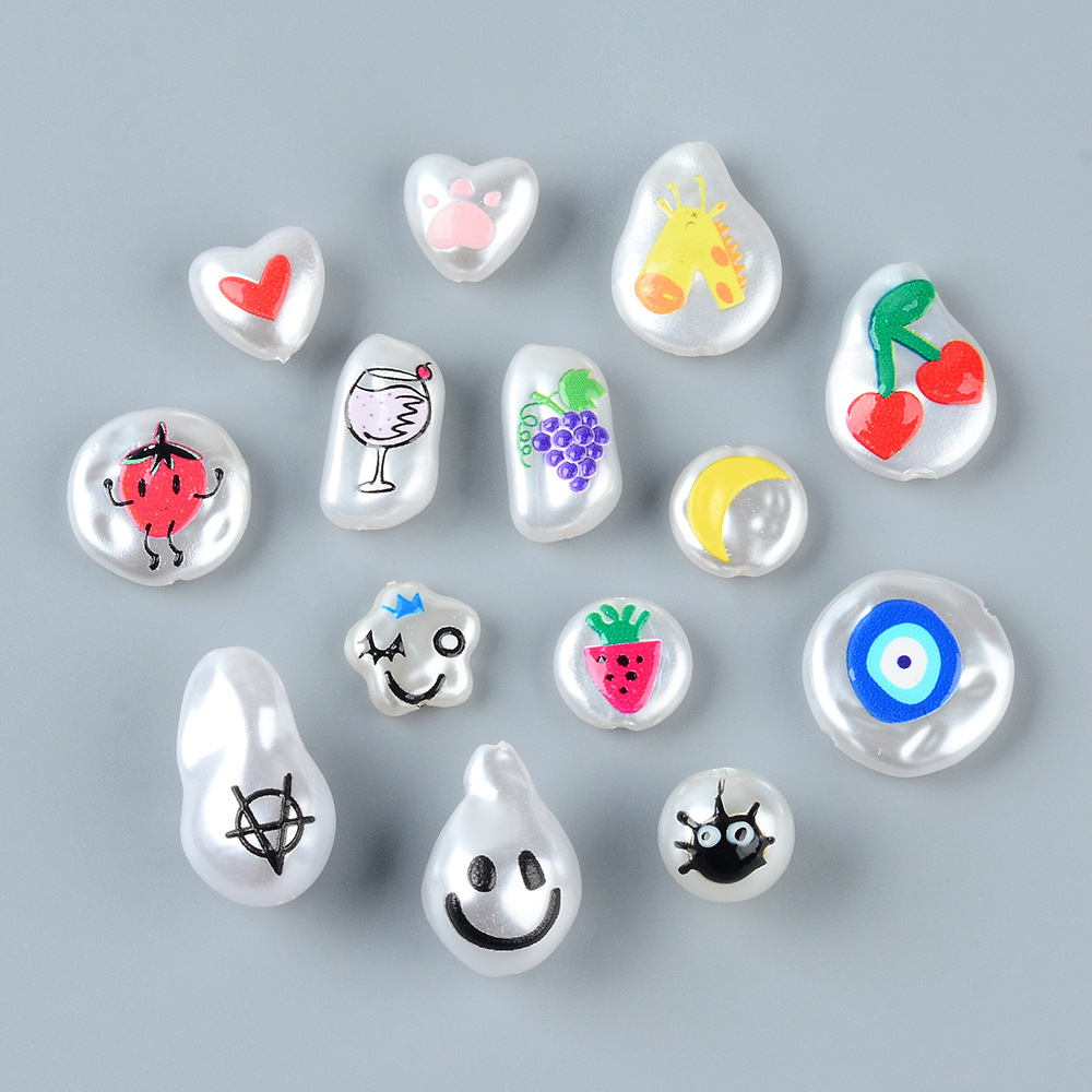 Ins風模造真珠手描き笑顔アクリルストレートピアスビーズdiy手作りアクセサリーイヤリングビーズアクセサリー