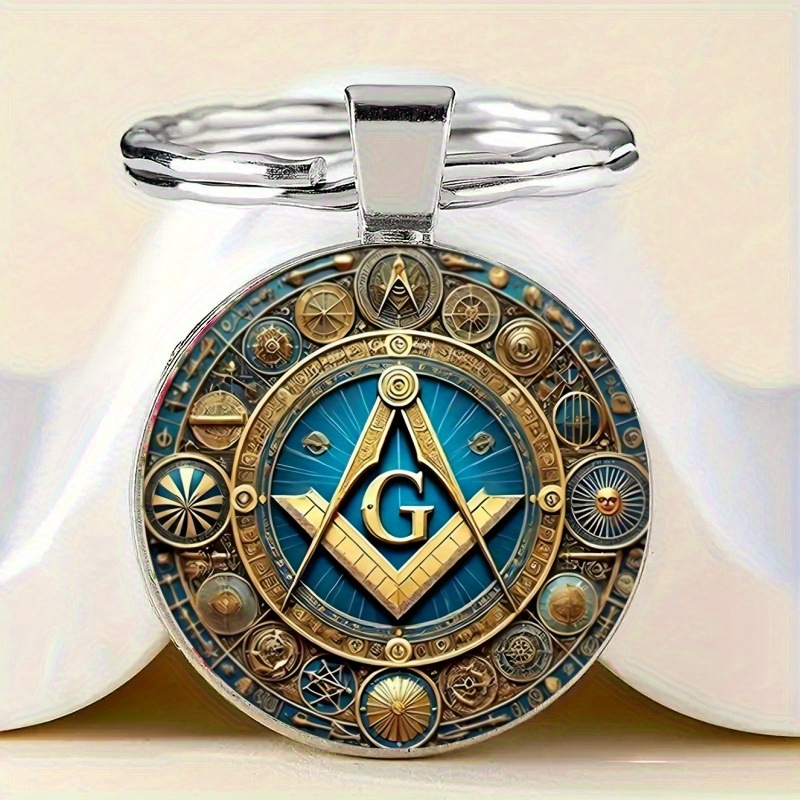 跨境新款共济会指南针时光宝石钥匙扣饰品复古设计小挂件礼物批发