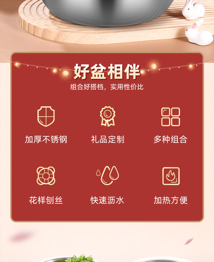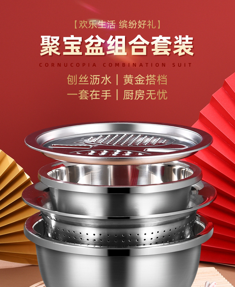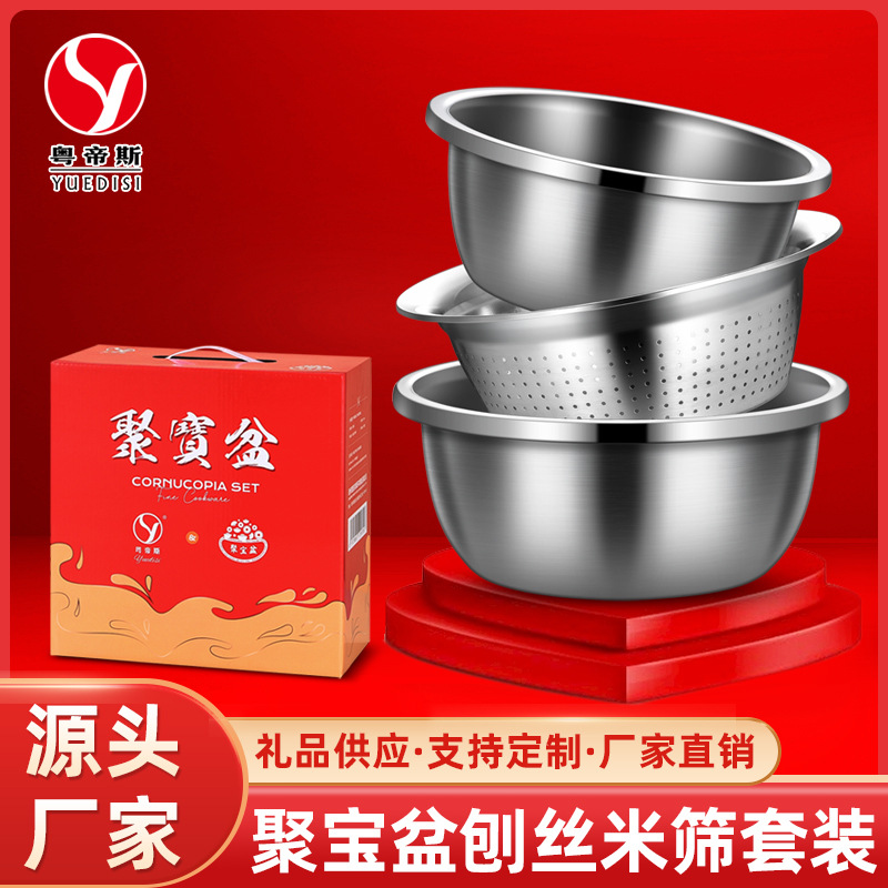 開門紅福気福盆三点セットステンレス盆米篩米盆洗濯鉢実用年用品セット