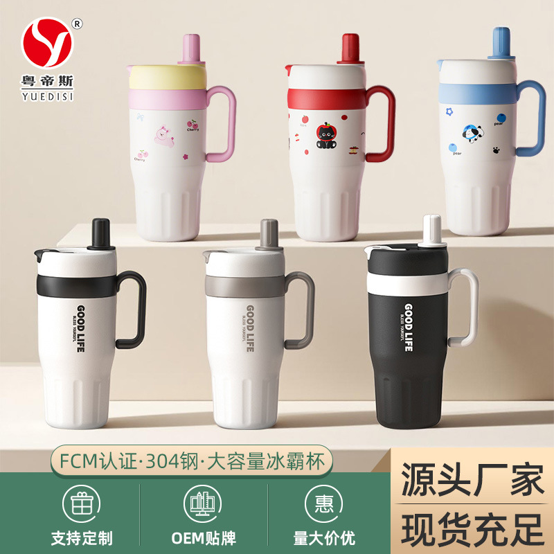 厂家直供 多巴胺带手柄吸管保温水杯304不锈钢巨无霸冰霸杯 代发