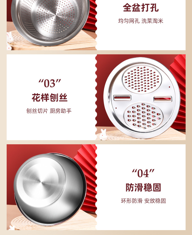 メーカーはステンレスの米篩を厚くして台所を3セット入れて、洗面器を厚くして米を洗う盆の国境を越えた贈り物をすることが多い