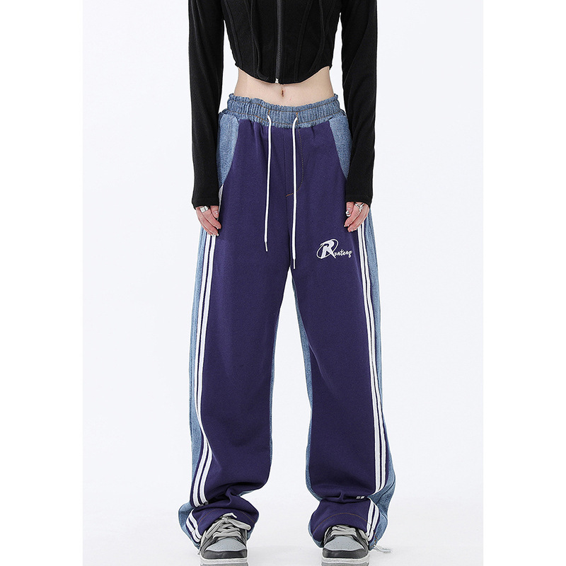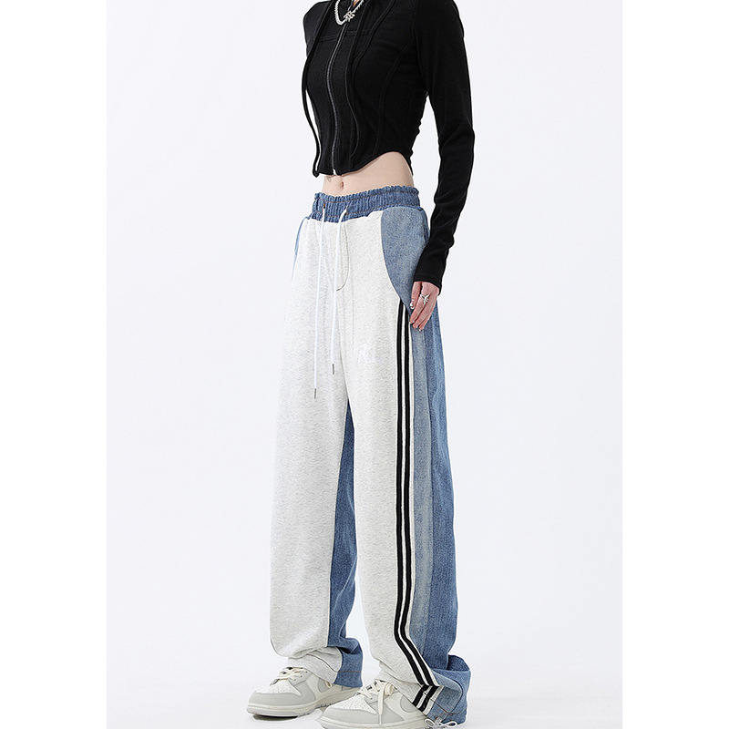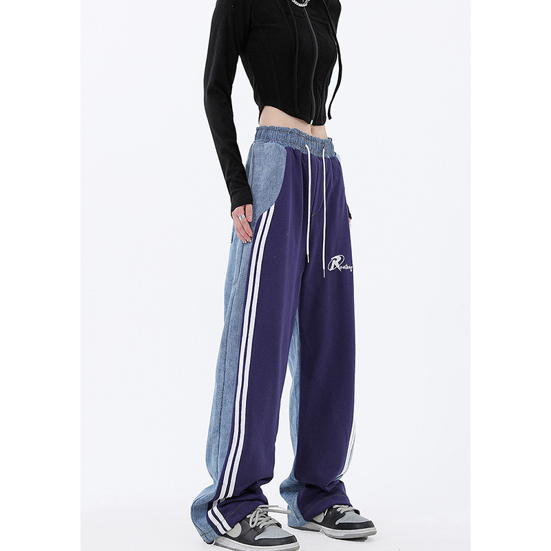2025年クロスボーダースプライシングジーンズ、アメリカンハイストリートルーズワイドレッグパンツ、レディーストレンディな秋のストリートダンススポーツカジュアルパンツ
