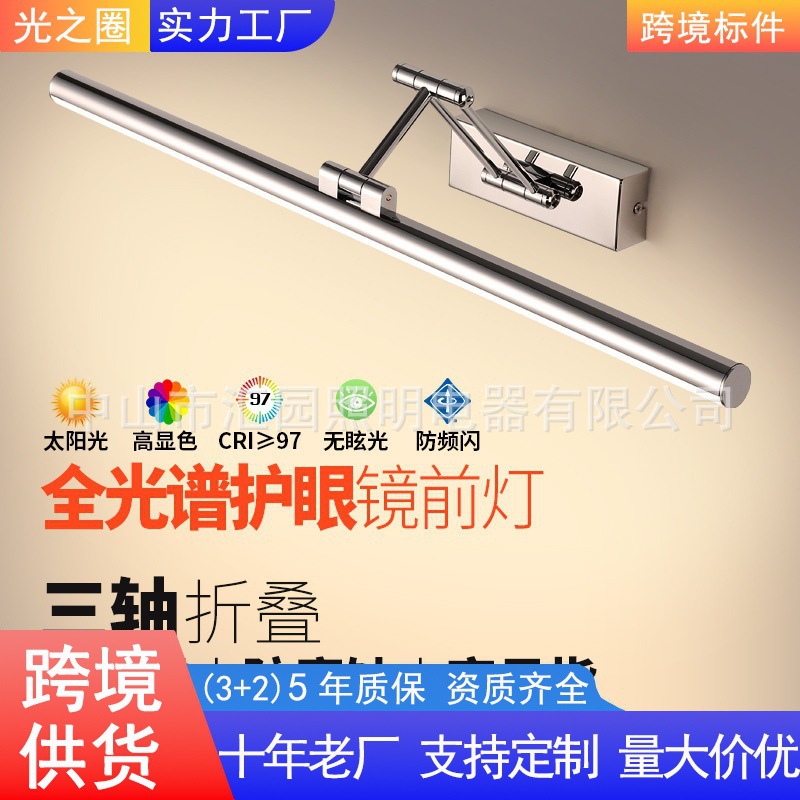 ミラーヘッドライトバスルームLEDモダンシンプルバスルームトイレ伸縮ミラーキャビネットライト3色化粧鏡ライトウォールランプ