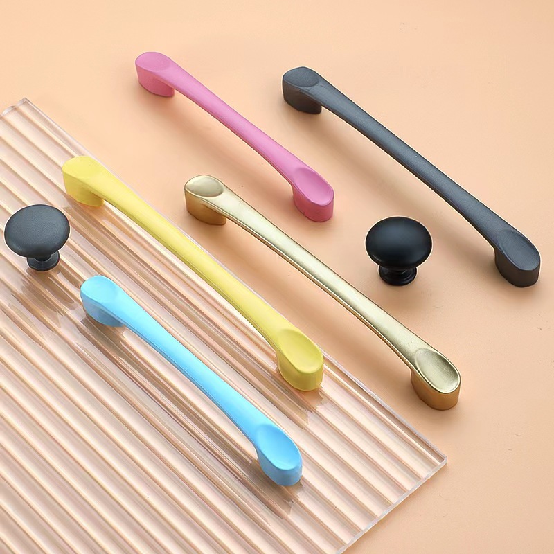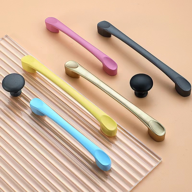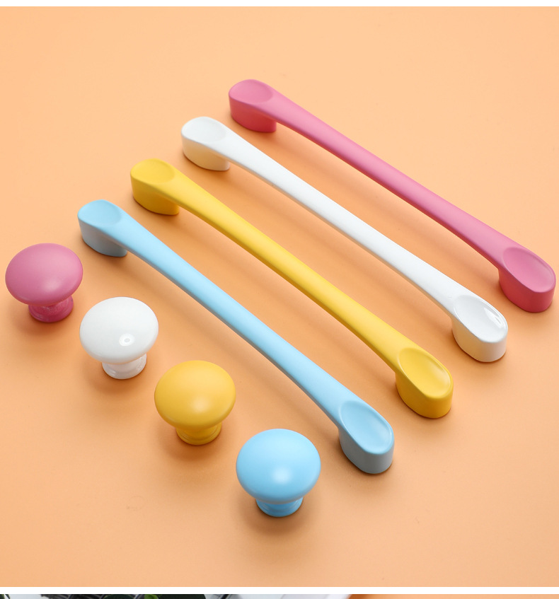 カラフル子供部屋漫画引き出しドアハンドルモダンシンプルピンクタンスキャビネットドアシングル穴ブルー黄色ハンドル