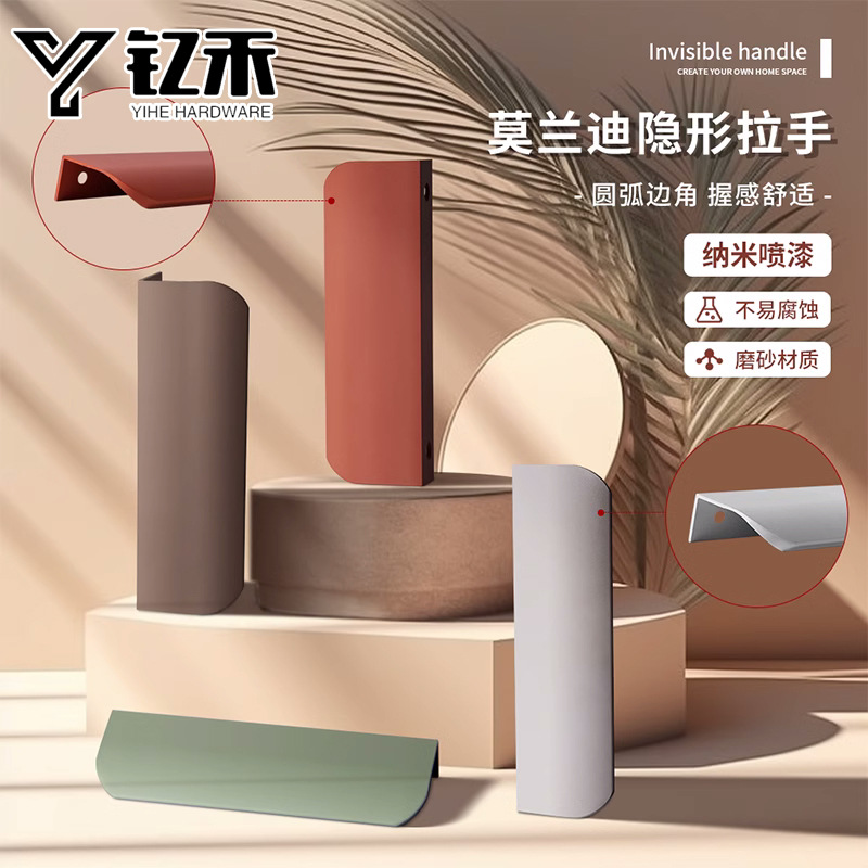 非常にシンプルなモランディクローゼットの引き出しキャビネットのドアの見えない取っ手の親指の丸いドアの取っ手はシンプルで高級なロングタイプです。