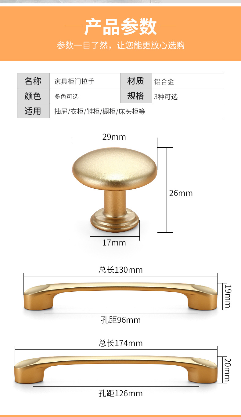 モダンなゴールドとブラックのカラーマッチングライト高級北欧拡張ワードローブドアハンドル引き出しハイエンドキャビネットアルミ合金小さなハンドル