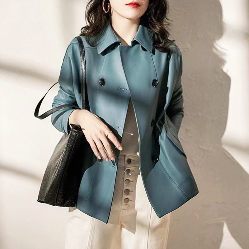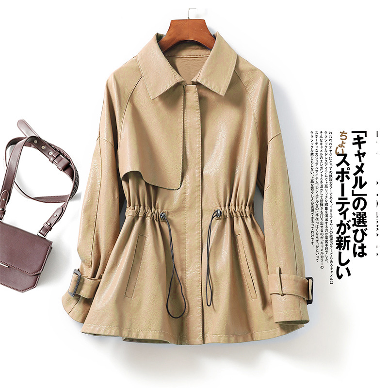 海寧レザージャケット レディース ミドル丈 ゆったり 2025年春新作 海寧羊革トレンチコート エレガントジャケット
