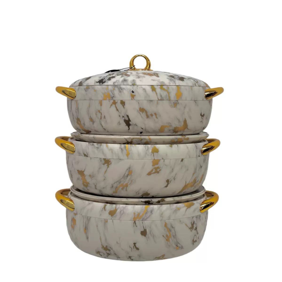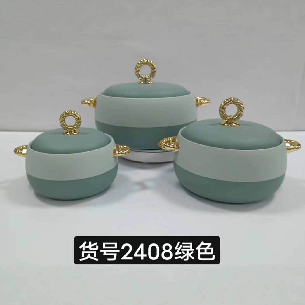 フードウォーマー熱い販売 3 個外国貿易断熱ボックス 1L-2L-3.5L /SET ゴールドハンドルアート。 2408