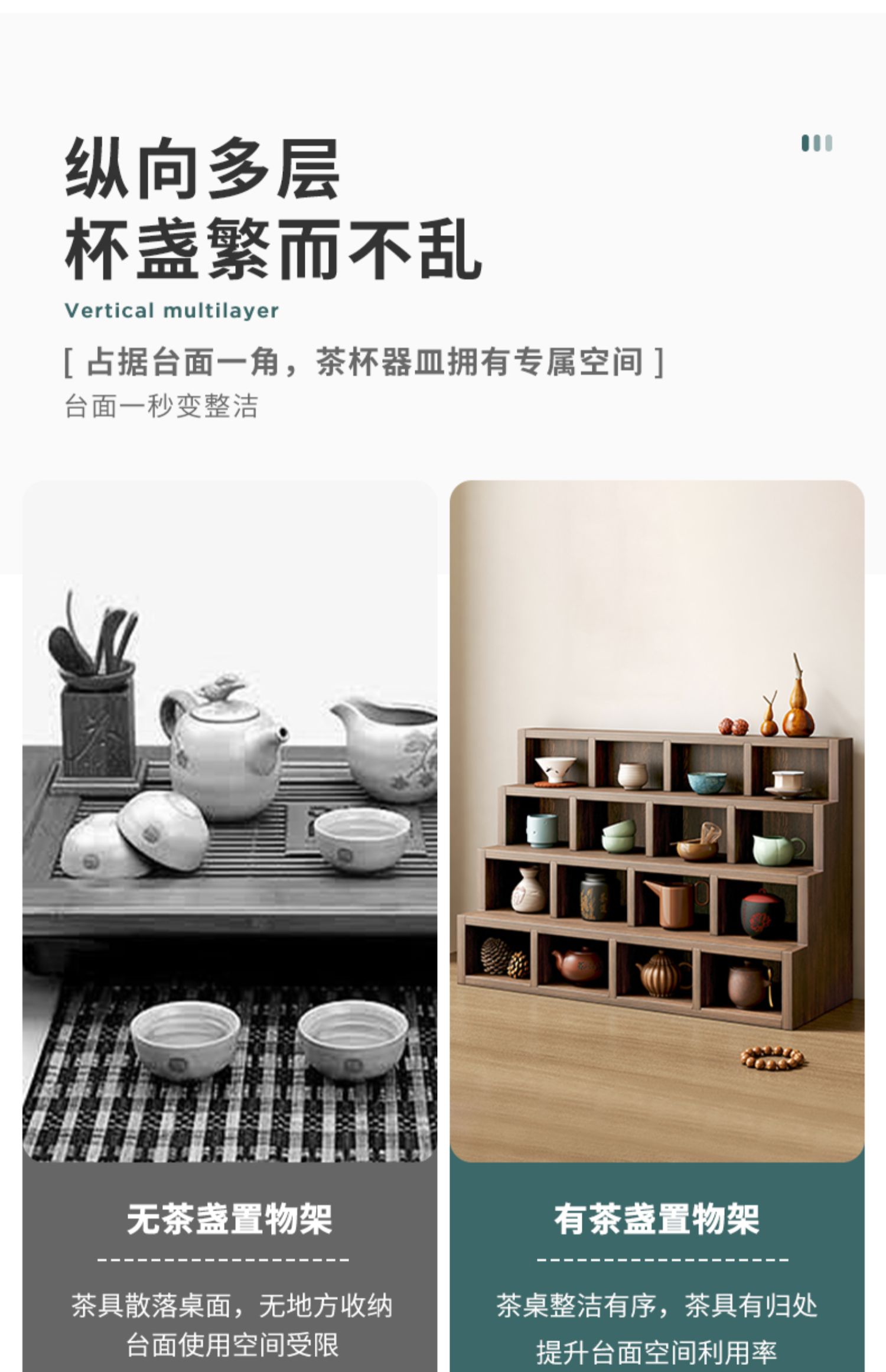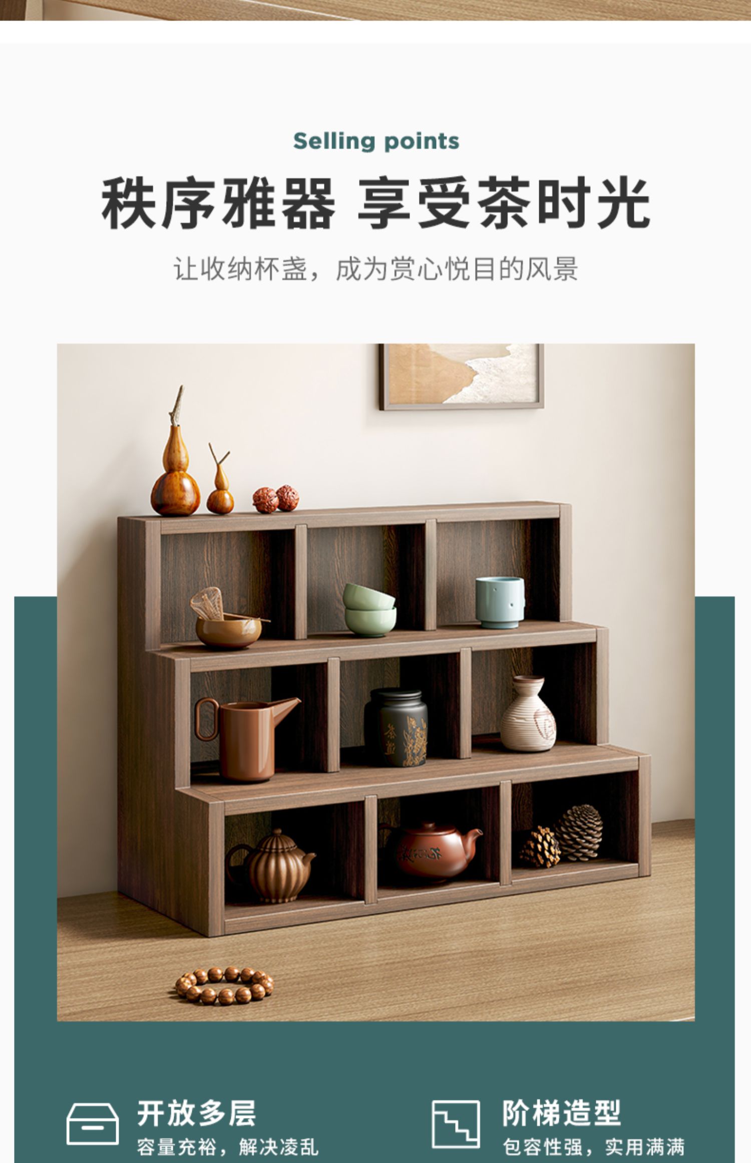 卓上収納ラック、無垢材多層収納ラック、ティーカップラック、骨董品ラック、多機能ディスプレイラック、展示棚、収納棚