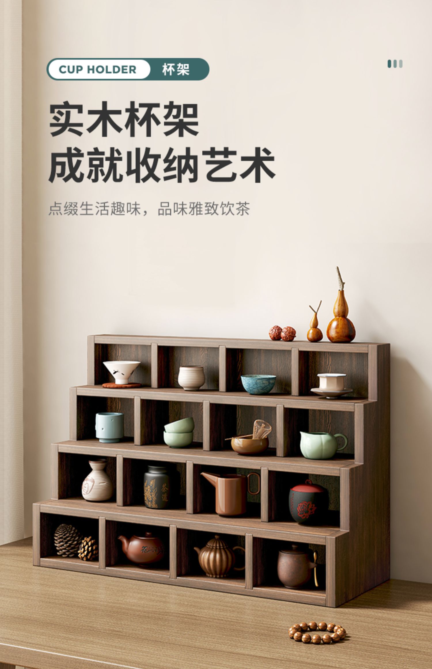 全実木カップ棚コップ収納棚デスクトップリビングカップラックマークコーヒーカップ多層展示棚