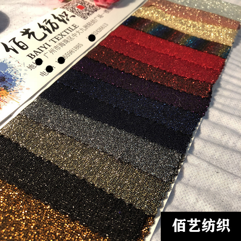 120克厚线布彩葱布 弹力亮丝金银丝针织面料 泳衣舞台服玩具面料