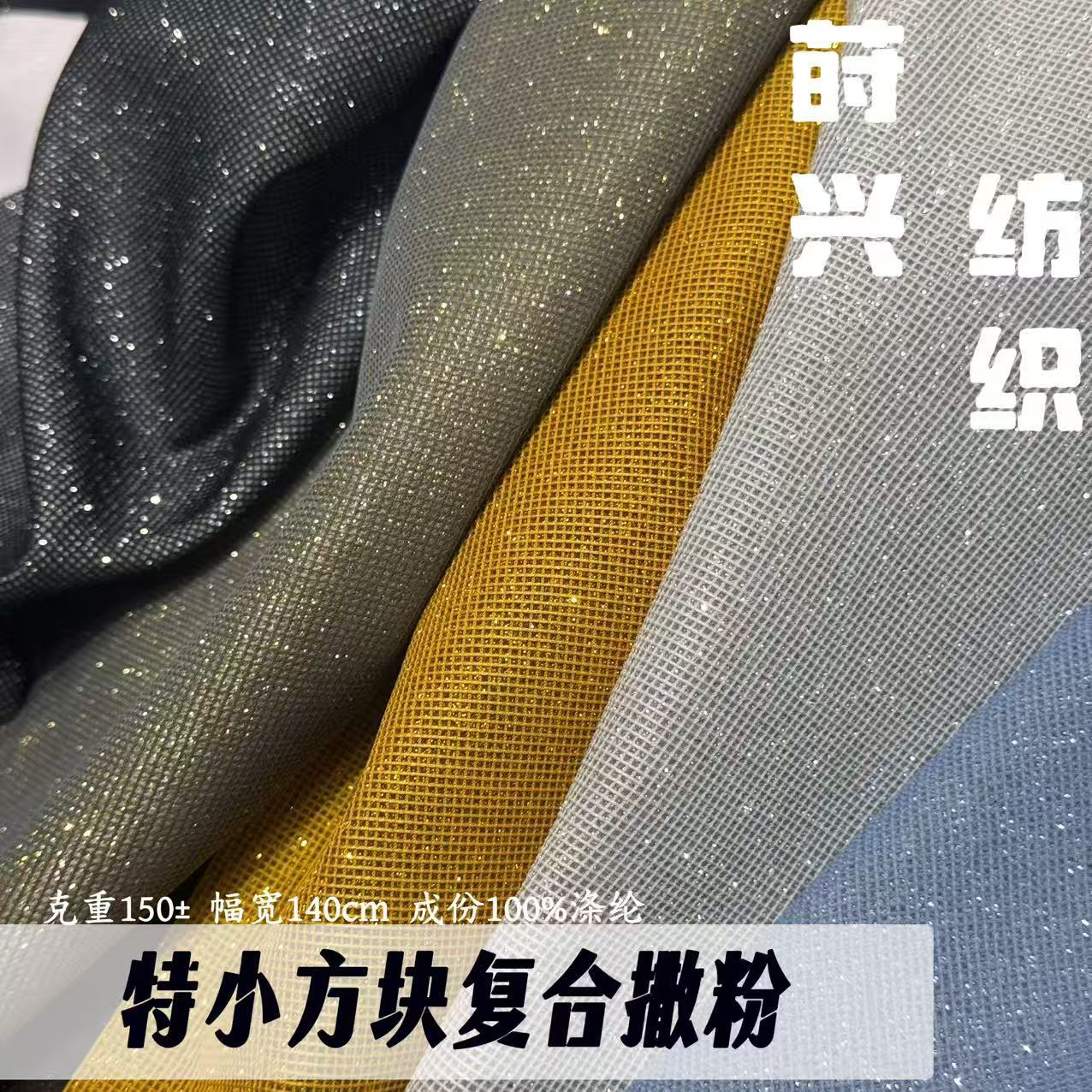 小方格网撒粉复合针织布闪光敬酒服礼服欧美时装公主裙表演服面料