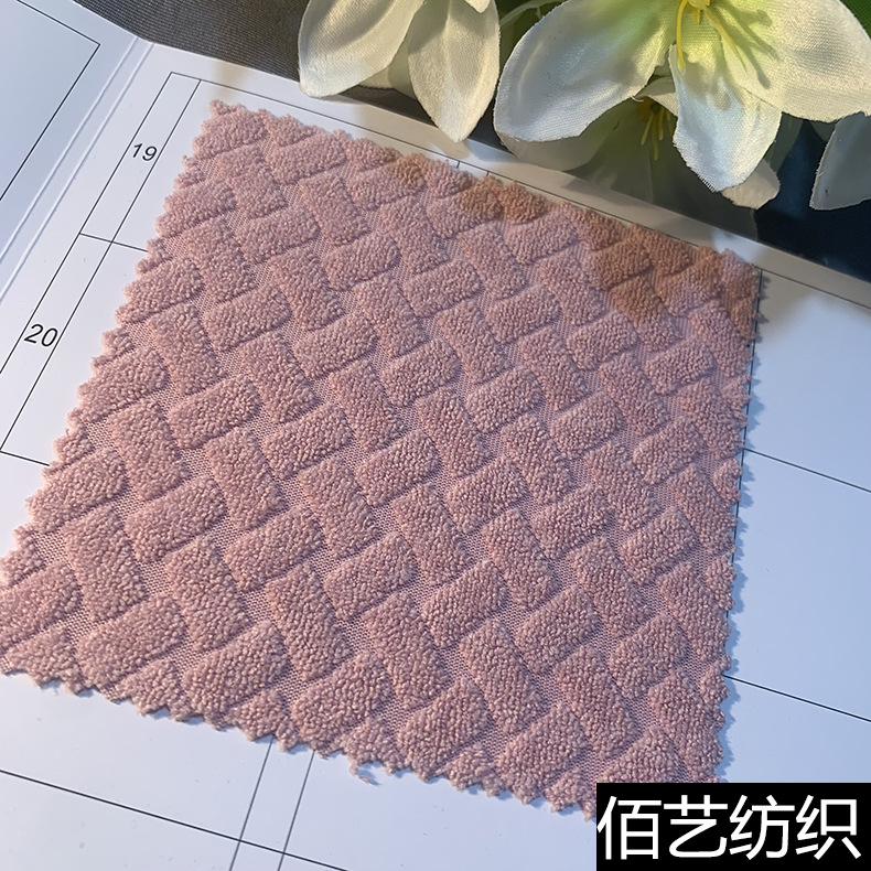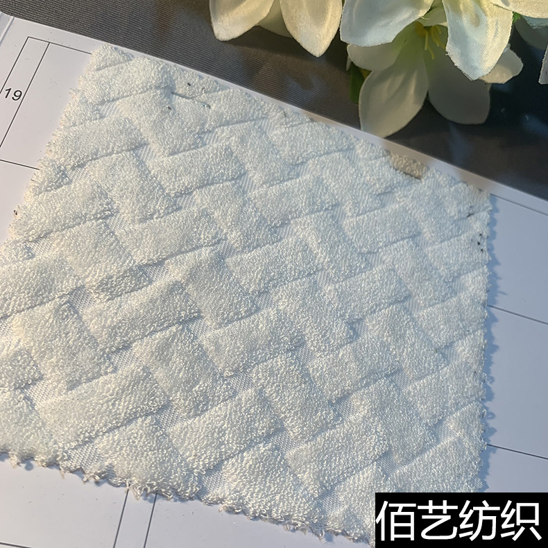 コットンポリエステルジャカードタオル生地柔らかい编み格子ニット布カジュアルスポーツウェアパジャマ雕刻花柄生地
