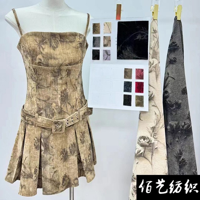 25秋冬高級コート、ウールスカート、水墨画、レトロ風シェルニーローズプリント生地