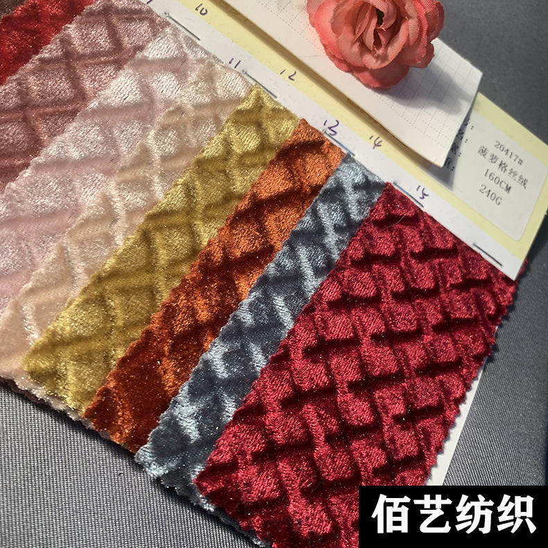 小さな格子模様のエンボス加工ベルベット生地、伸縮性のあるニット、韓国製ベルベット工芸、エンボス加工のチャイナドレス、婦人服用ベルベット生地