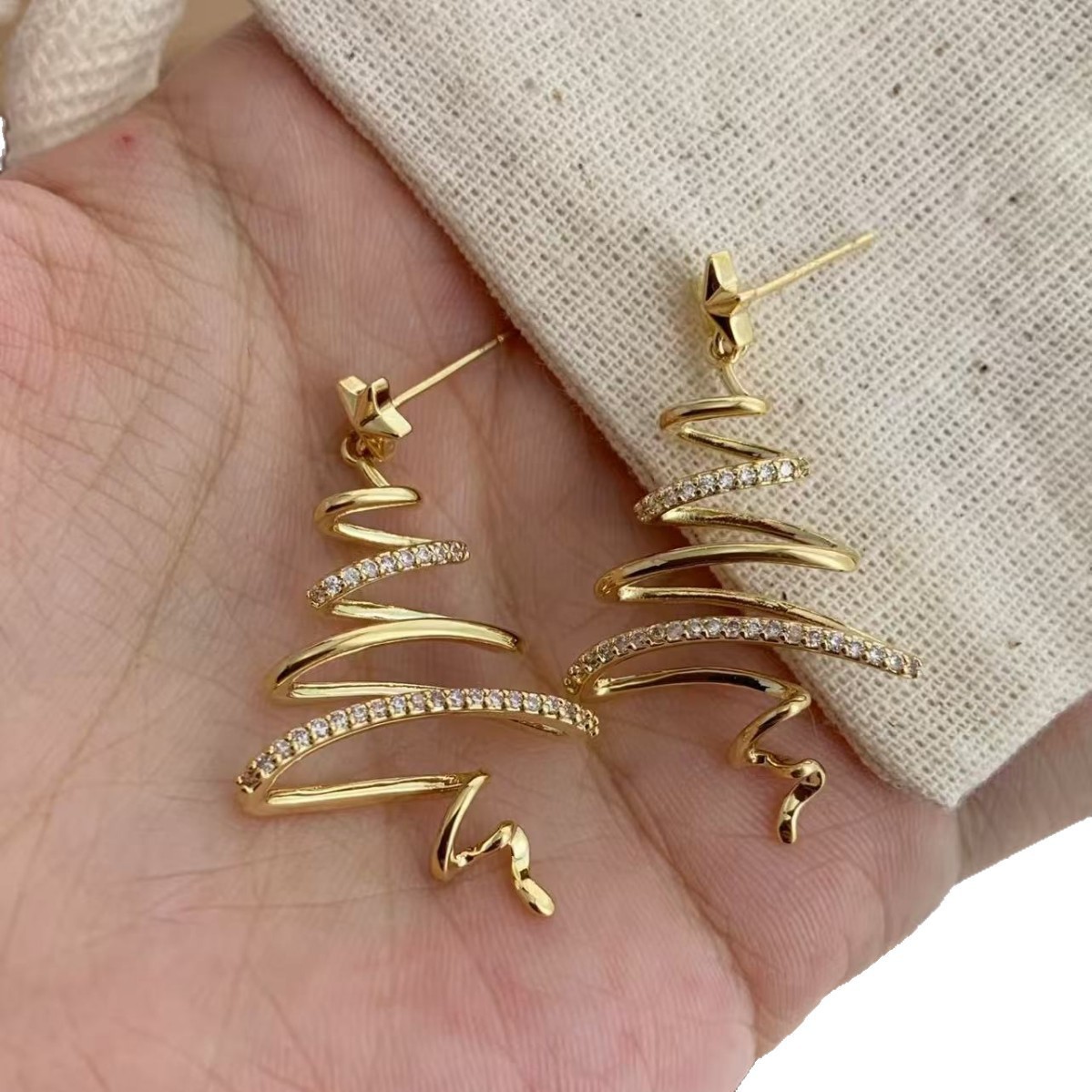 创意感镂空线条圣诞树耳钉精致高级感百搭小众气质圣诞树闪钻耳钉