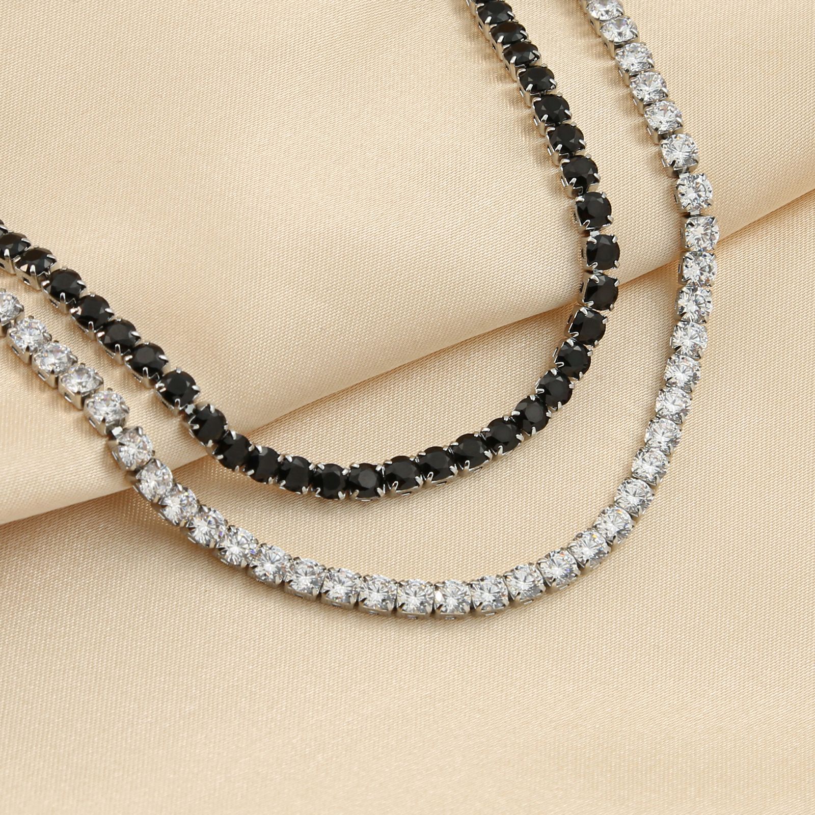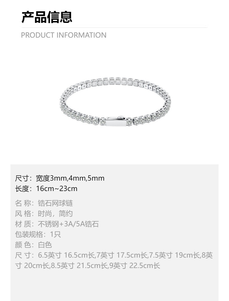 简约时尚不锈钢铸造网球链5A锆石镶嵌3mm 4mm 5mm宽闪耀珠宝配饰