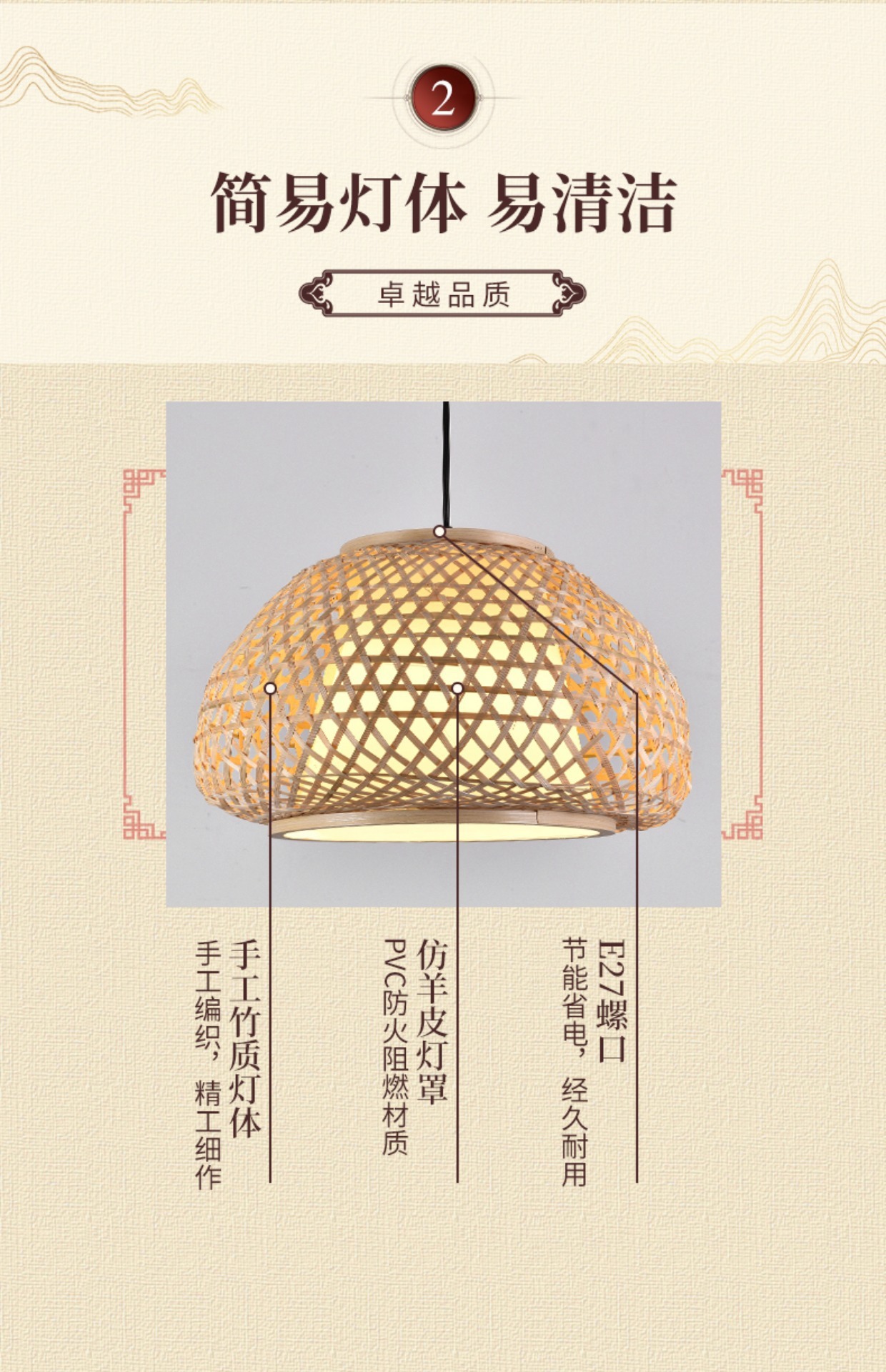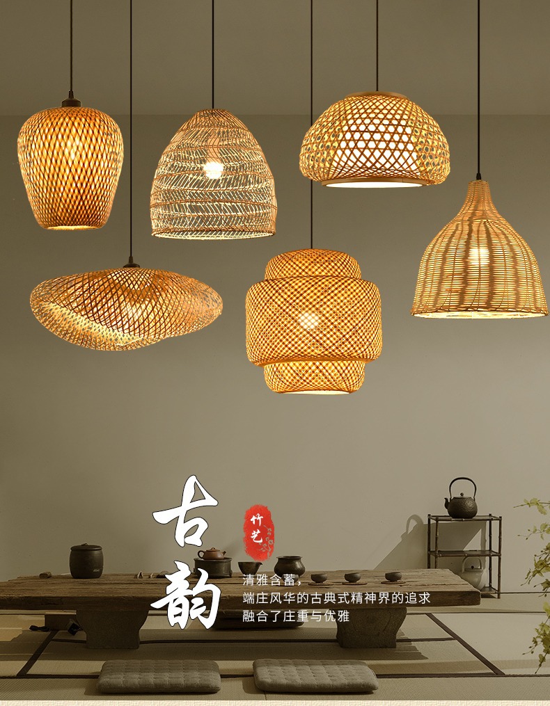 竹編みシャンデリア中国式禅意茶室灯東南アジアレストランホテル民宿スタイル日本式竹芸鍋照明