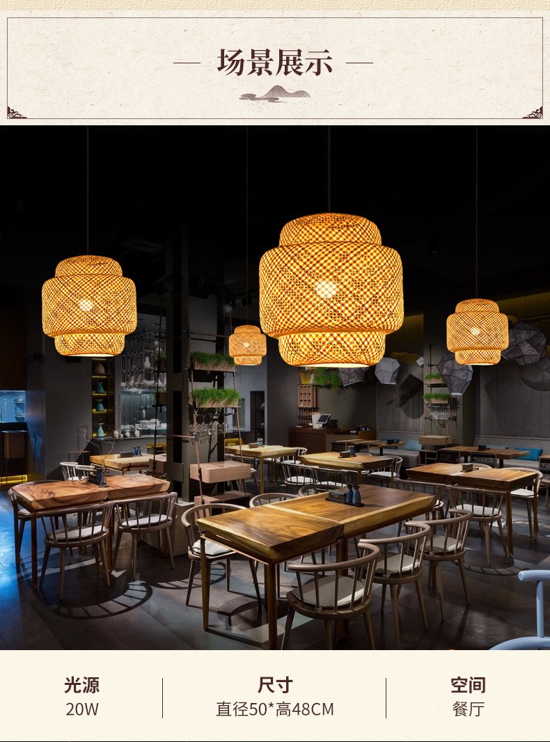 中国式竹編み提灯復古印字火鍋店農家楽レストラン茶室民宿禅意旅館芸術シャンデリア
