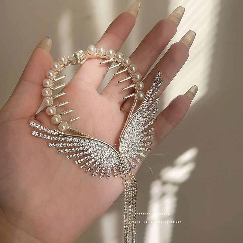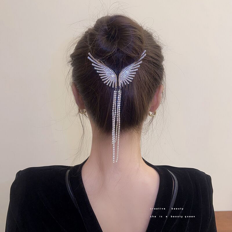天使の翼のネットの赤いフリンジの真珠のドリルの馬尾は髪の輪の団子の髪の毛を掛けて神器の髪の飾りを固定します。