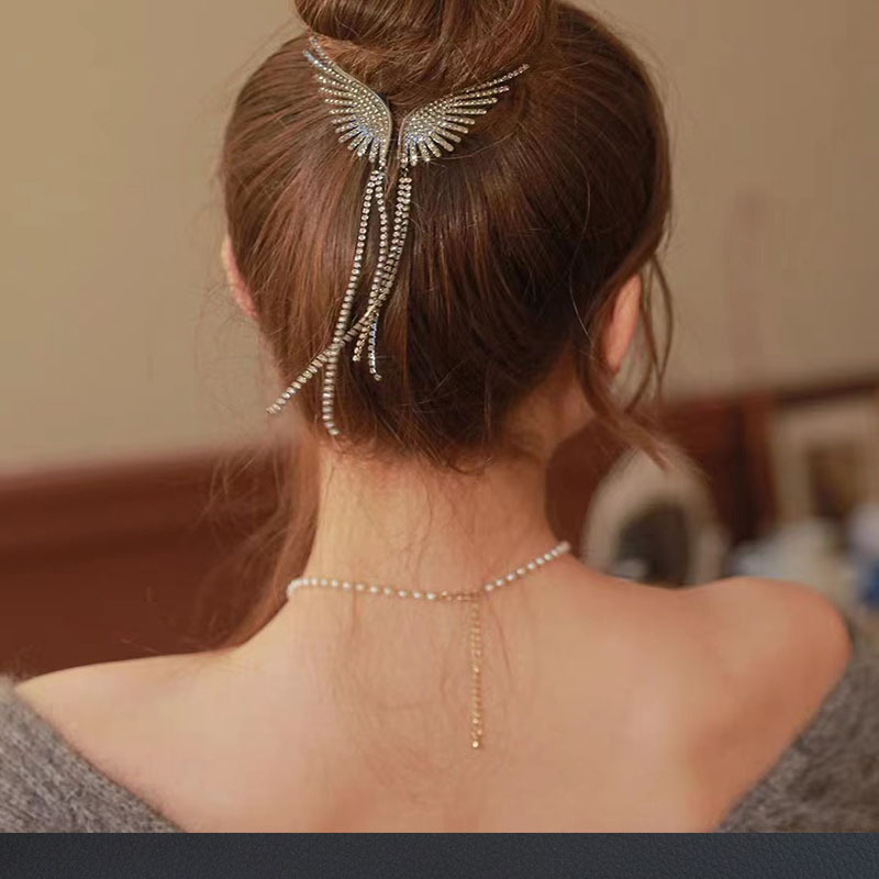 軽い豪華な蝶のフリンジヘアのサイドの高級感のあるドリルの長いタイプのヘアピンの偽の耳飾りの個性的な大衆の設計の髪飾り