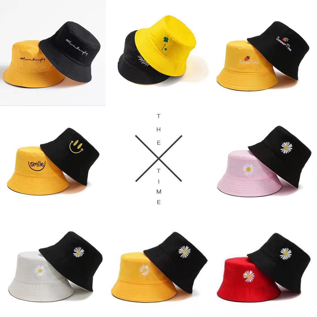 双面笑脸渔夫帽韩版刺绣两面带遮阳帽四季通用盆帽外贸洋气帽子