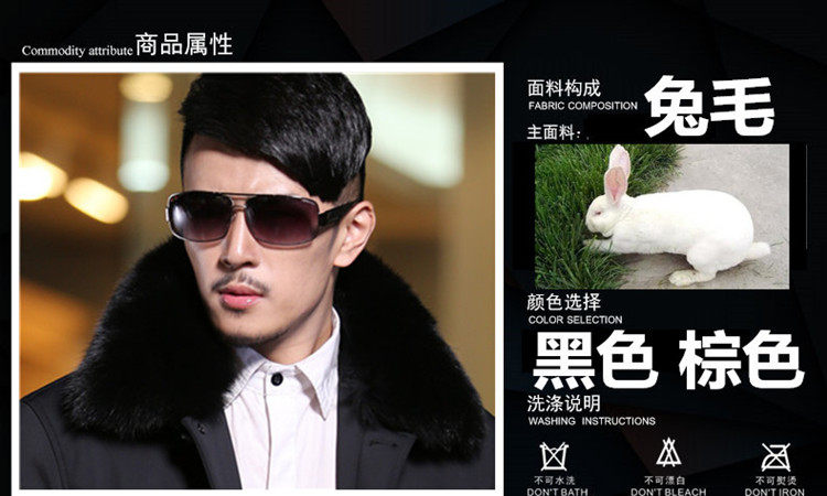 襟メンズ襟秋冬通用小さな黒い方襟ウサギ毛コート毛皮襟襟襟襟シングル制服革衣