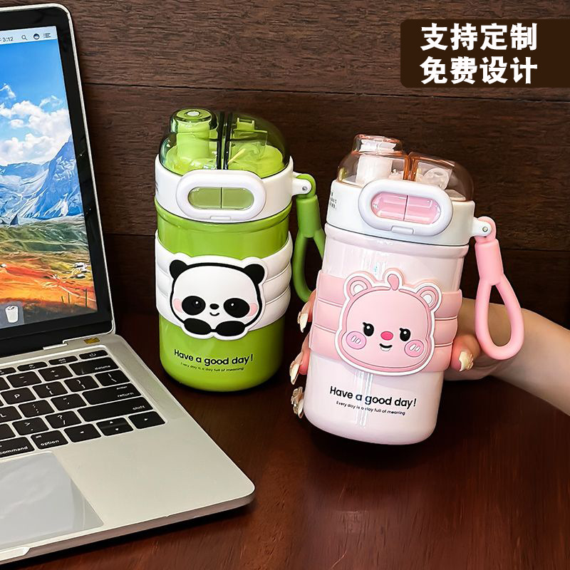 雪氷帯公子頭一蓋二重飲みプラスチックカップひも付き直飲ストロー両用コップ