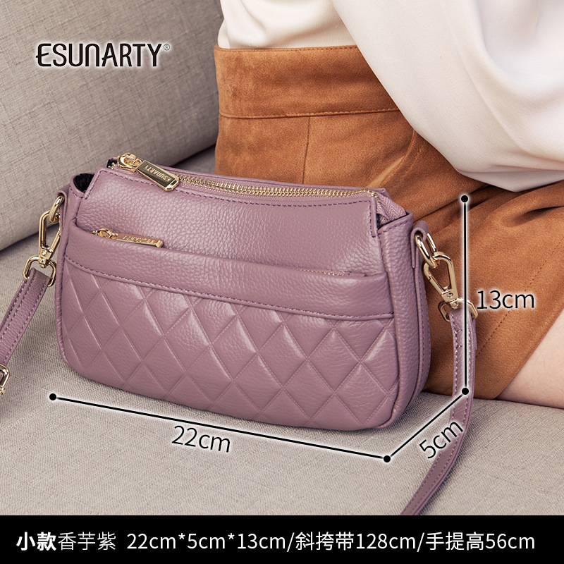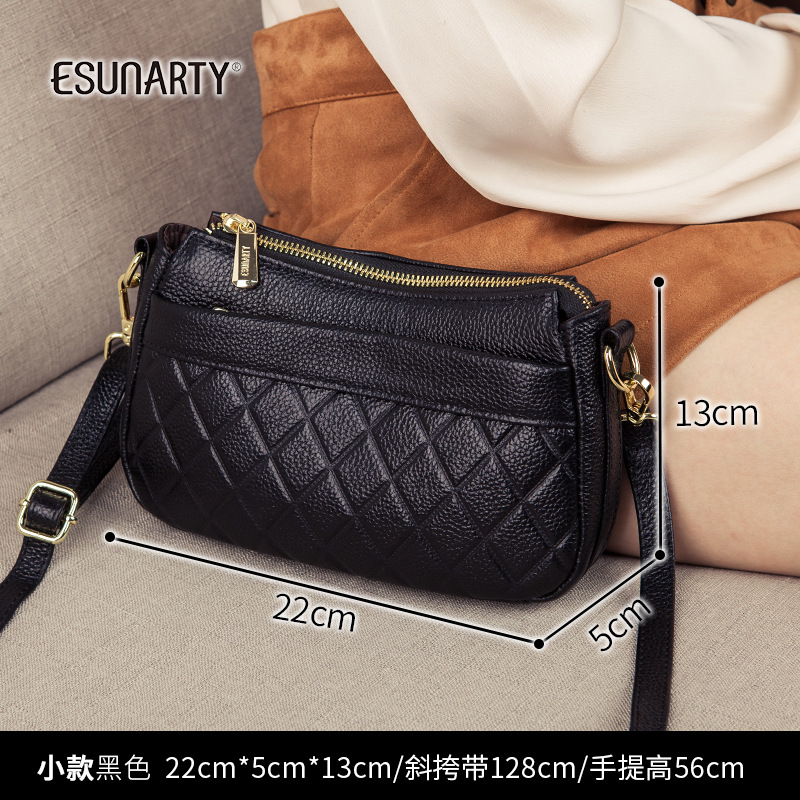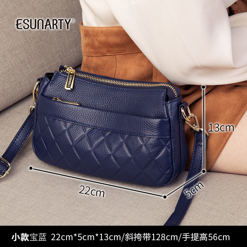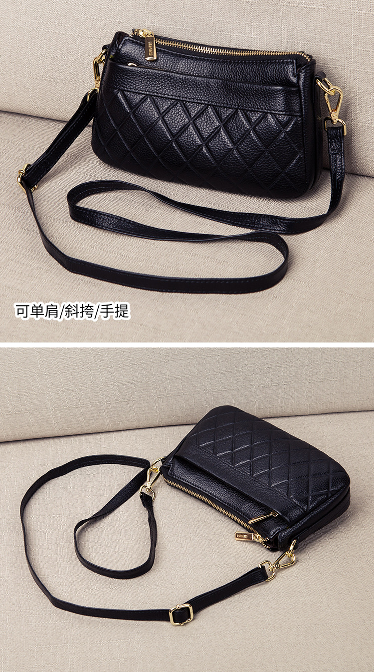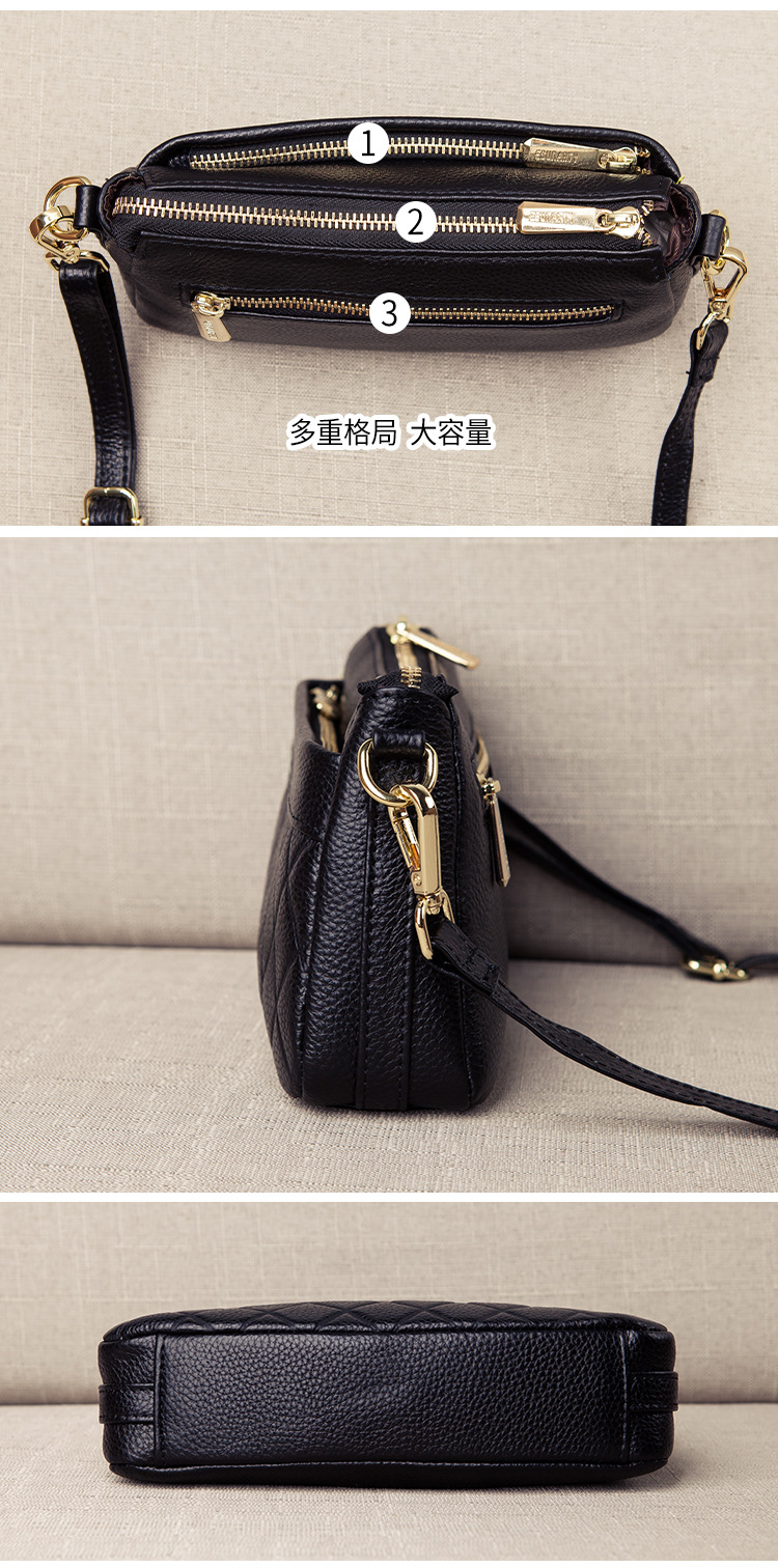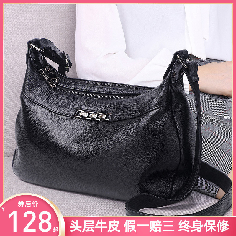バッグ女性2025新型潮多ファスナー多層真皮女性バッグシングル肩斜めショルダーバッグソフトトップ層牛革ハンドバッグ