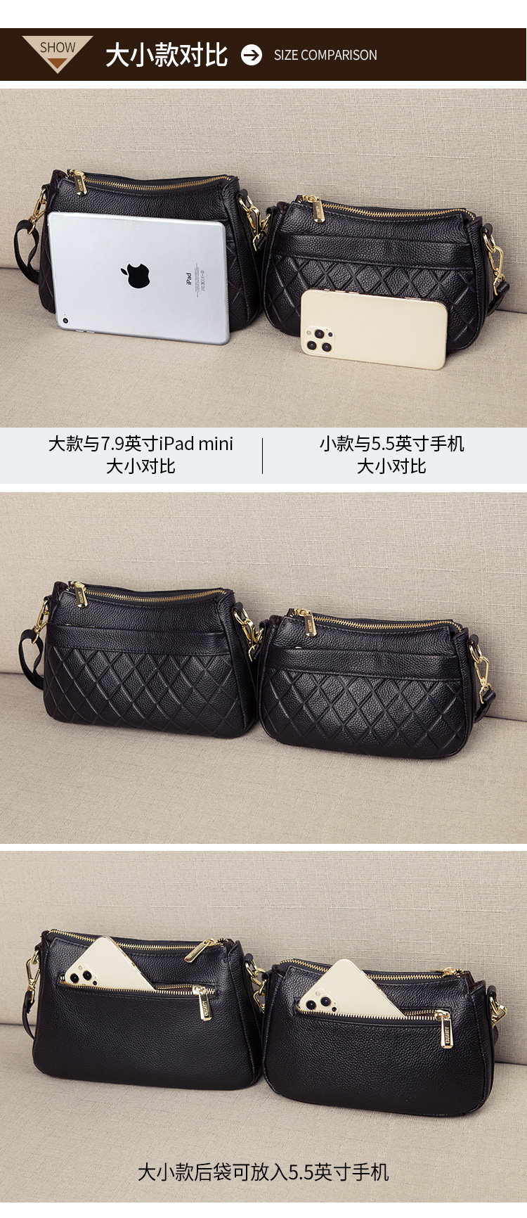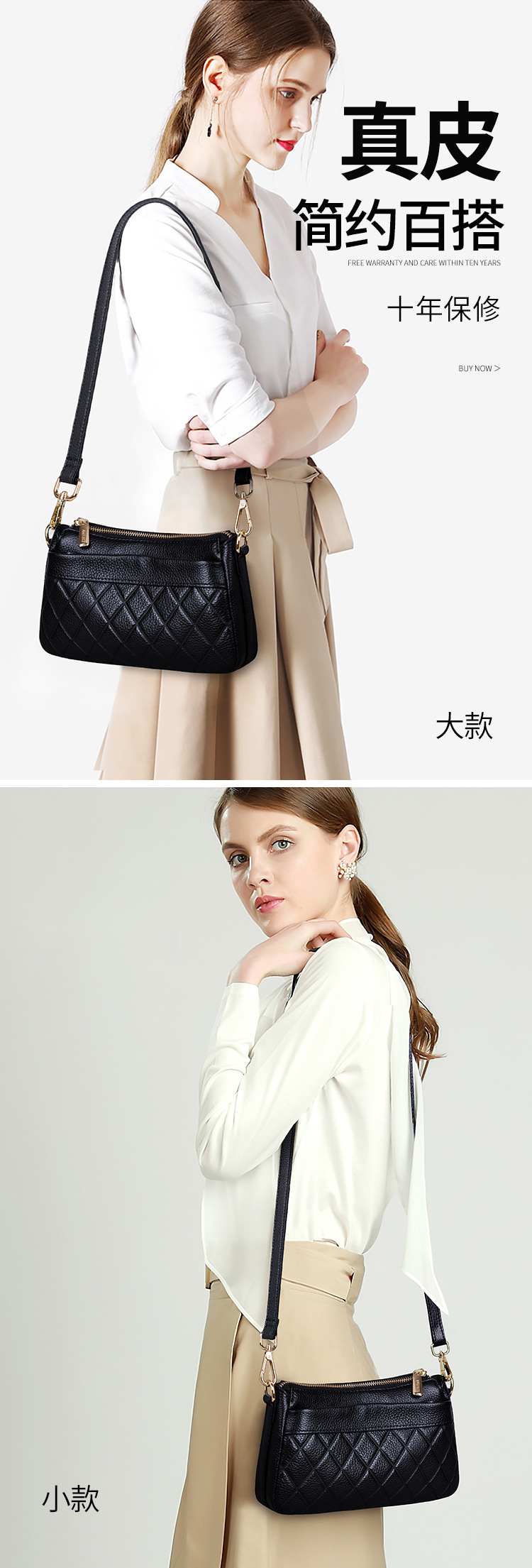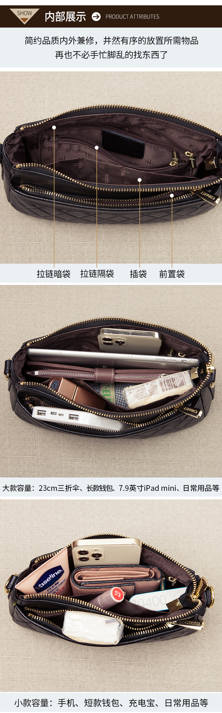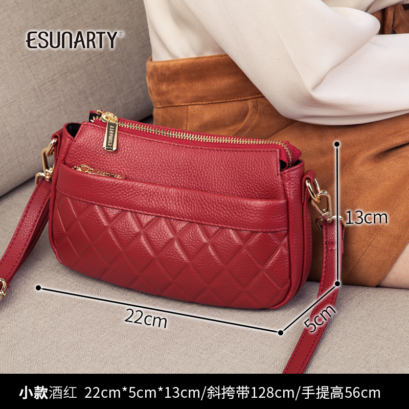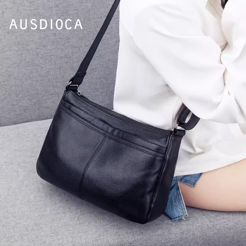 バッグ女性2025新型潮多ファスナー多層真皮女性バッグシングル肩斜めショルダーバッグソフトトップ層牛革ハンドバッグ