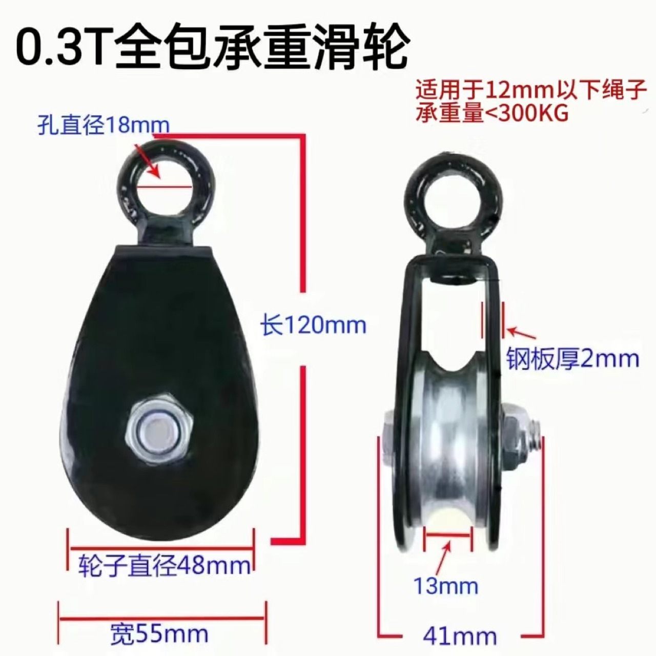 メーカー直供クレーン滑車ワイヤーロープ0.5t1t1.2tシームレス防脱単輪軸厚肉鋼板滑車