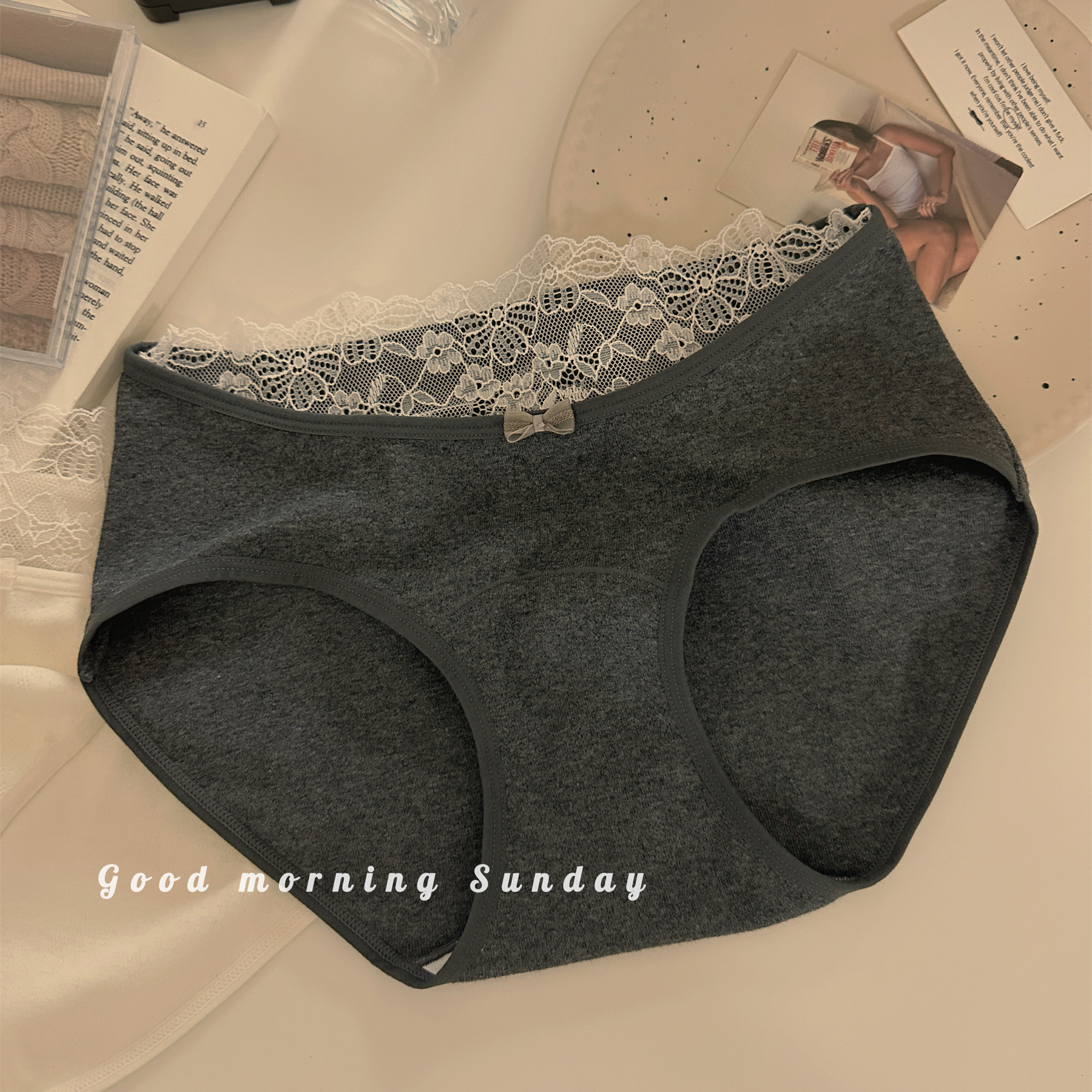 纯棉内裤女法式蕾丝边10A抑菌舒适无痕纯色甜美少女全棉三角内裤