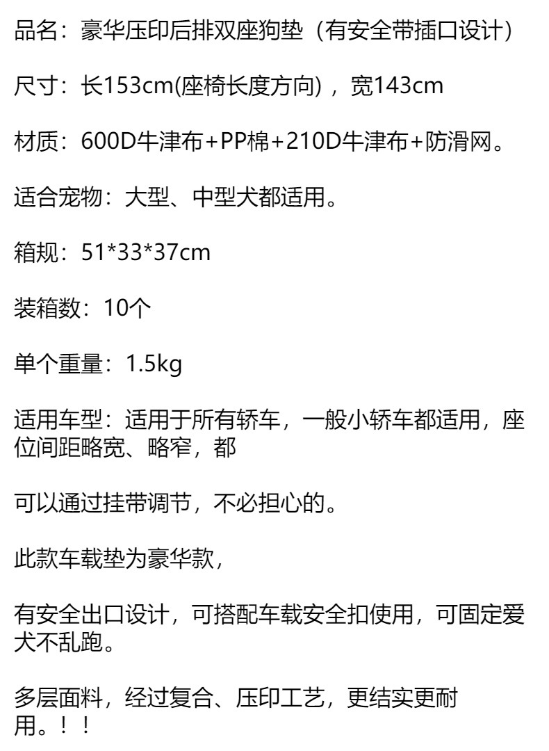 メーカー直販ペット車マットネット糸掛けバッグ通気防水二重ペット車バッグ外出旅行車マット