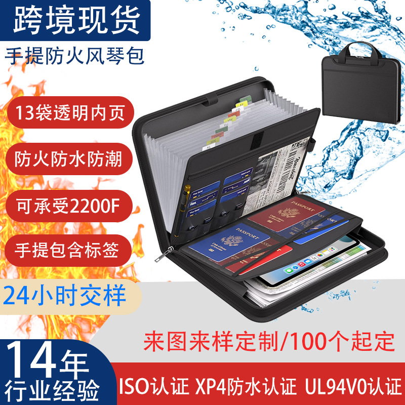 防水・防火のアコーディオンバッグ、手提げ、前後2つのポケット付き、多機能収納ファイルバッグ、透明アコーディオンバッグ
