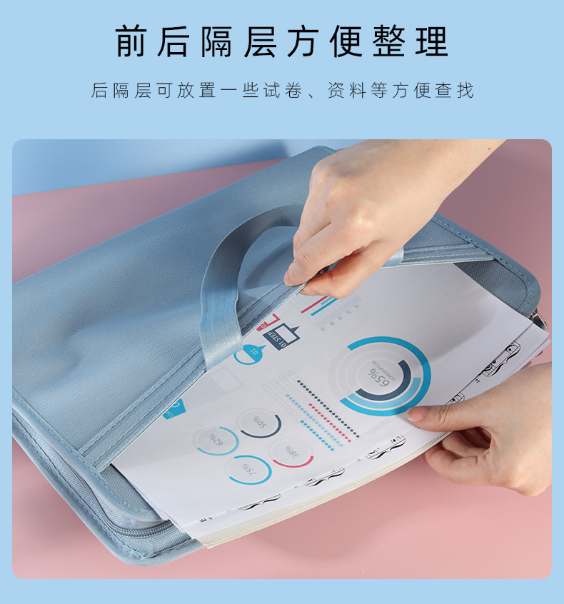 有力オルガンバッグファイルa4大容量PM339布質多層ハンドバッグ試巻クリップ手提げグレー