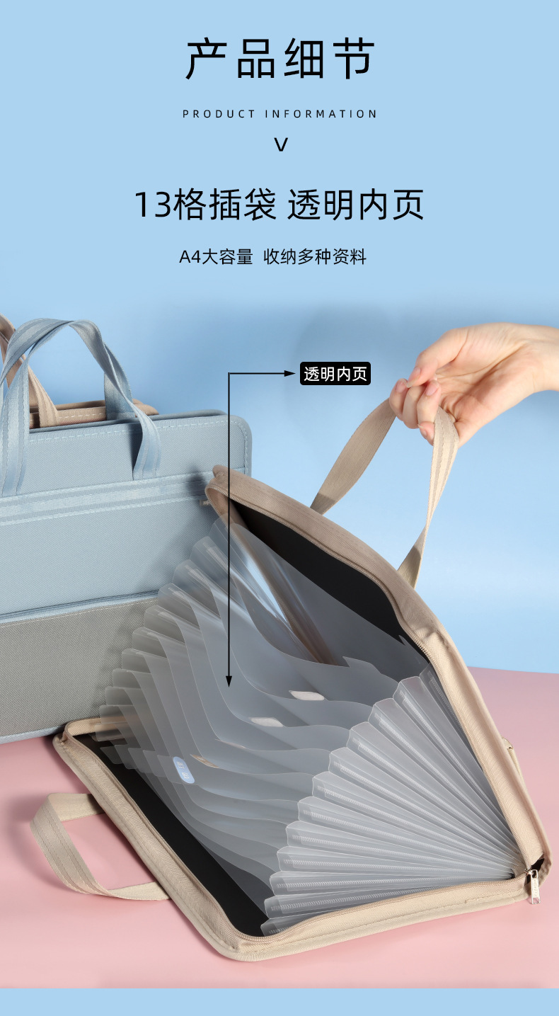 跨境A4风琴包13格加厚73丝双拉链PP文件夹试卷分类收纳袋可定制