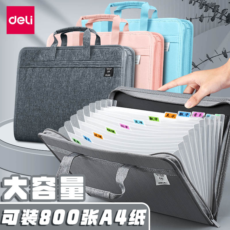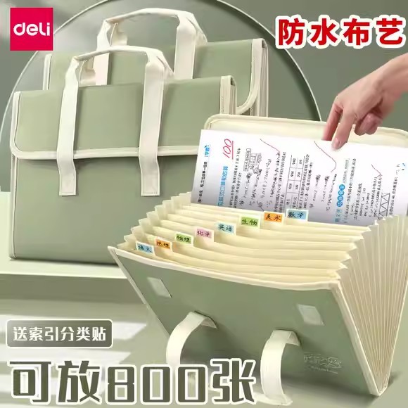 得力帆布风琴包a4手提文件夹试卷袋多层多功能大容量学生卷子批发