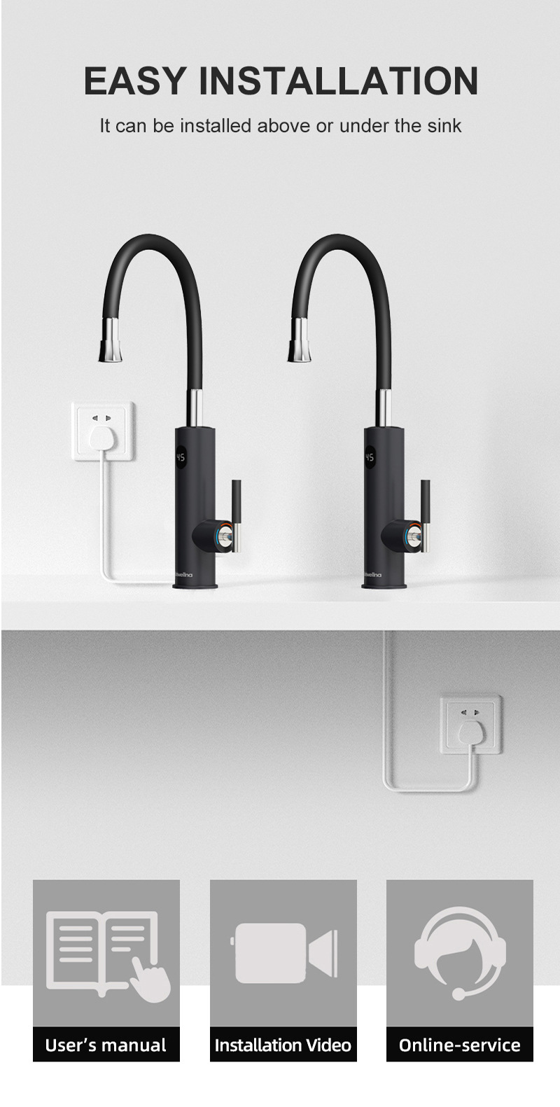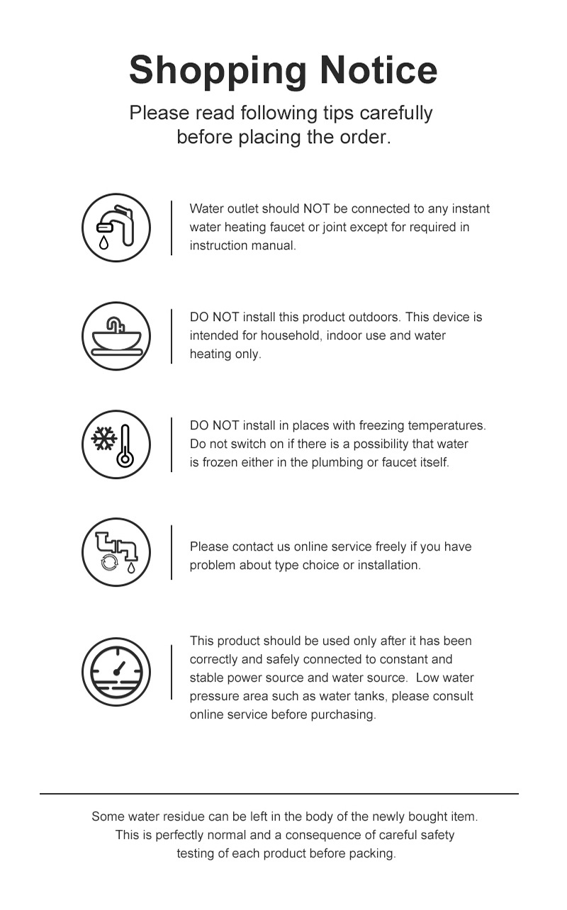 DON'T test it in your hands before installing finished, that's would be very dangerous. Please operate it under the user manual. Vertical installation, when the installation is completed, water first and then power up.