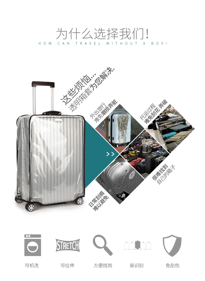跨境行李箱套加厚款PVC旅行箱拉杆箱箱包透明防尘罩防水耐磨防割